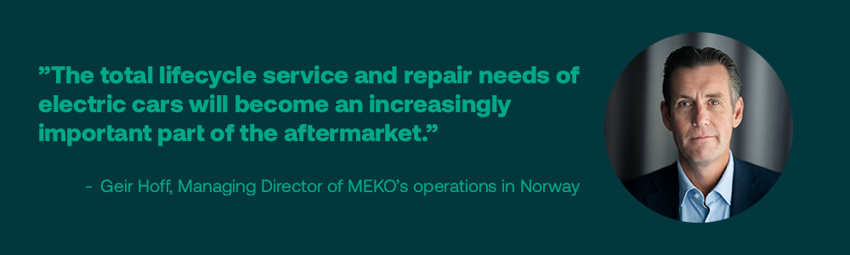 “Our workshops are seeing this transition up close,” says Geir Hoff, Managing Director of MEKO’s operations in Norway. “Through Mekonomen and MECA, we are already working daily with electric cars and the specific repair needs that follow as the fleet grows and gradually matures.”